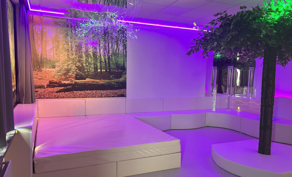Onze snoezelruimte is een veilige, rustgevende plek waar kinderen helemaal tot zichzelf kunnen komen. Met een waterbed, bubbelunits, een aquarium en rustgevende projecties met muziek worden de zintuigen zacht gestimuleerd. De belevingsboom, snoezelboxen, klankwieg en speciale verlichting, zoals wolkenplafonds en natuurthema’s, zorgen voor een unieke ervaring op maat van elk kind. Zo helpt de snoezelruimte om spanning los te laten, emoties te verwerken en met hernieuwde energie weer verder te leren en spelen.